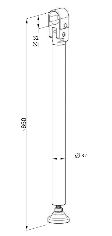 ✅ Wysokość 650 mm z możliwością regulacji ± 15 mm , rura Ø32 mm
