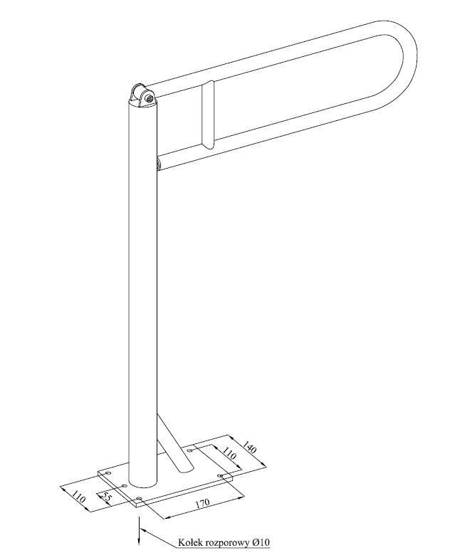 - Uchwyt podłogowy przeznaczony jest do montażu przy toalecie lub umywalce lub tam gdzie trzeba ułatwić poruszanie się, opieranie czy podnoszenie.