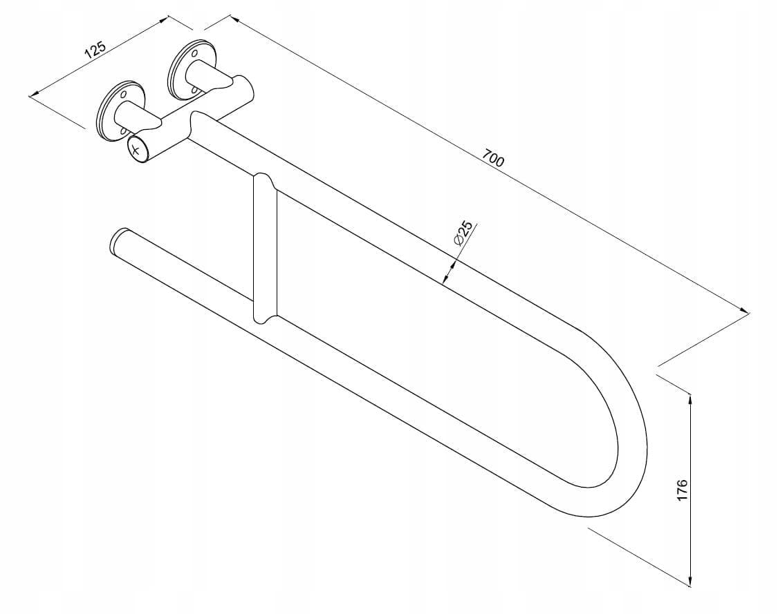 - Wymiary:125mm x 176 mm x 700 mm, rura Ø25 x 2
