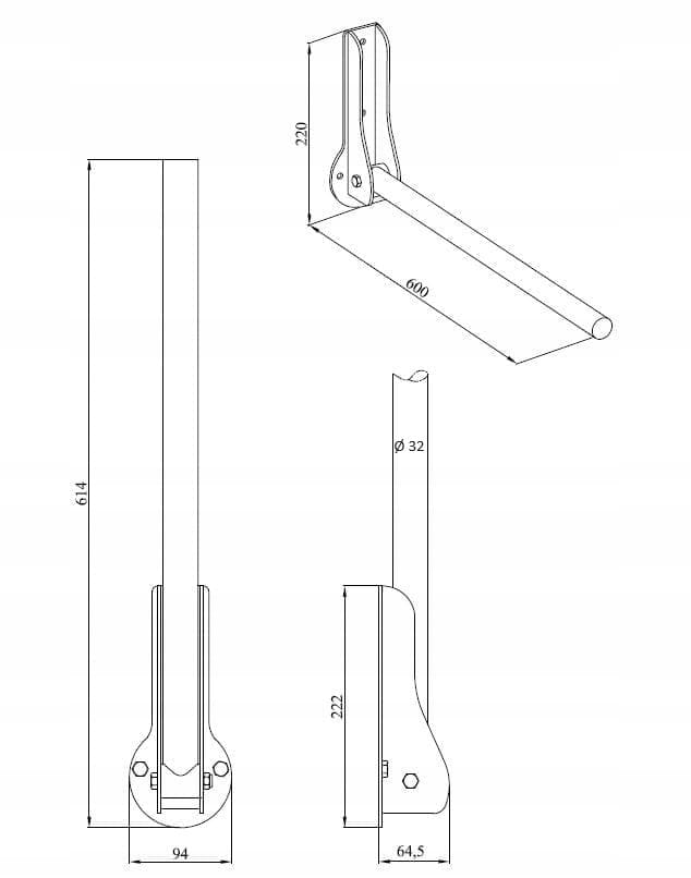 ANDEX Uchwyt prosty uchylny 60 cm Ø 32 Stal nierdzewna