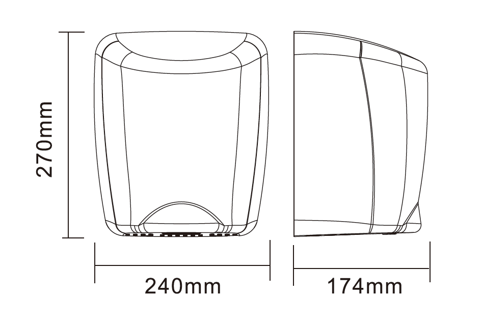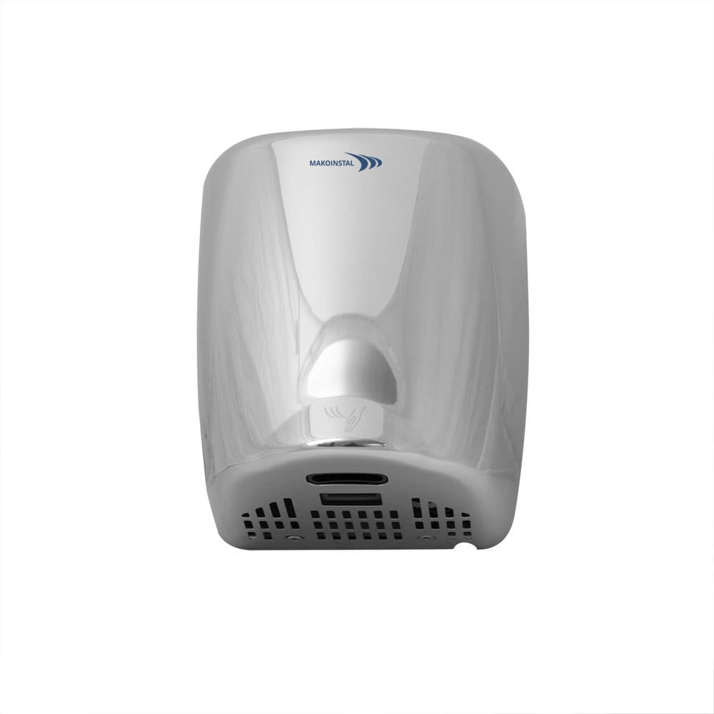 Automatyczna suszarka do rąk ze stali nierdzewnej AISI 304 to szybki, energooszczędny oraz higieniczny produkt stanowiący uzupełnienie każdej łazienki użytku publicznego. Suszarka posiada stalową obudowę o grubości powłoki liczącej 1,5 mm, co więcej całość posiada wysoką odporność na wilgoć, korozję oraz akty wandalizmu. Wykończenie obudowy jest polerowane. Dodatkowo suszarka posiada zabezpieczenie przed wodą IPX1.