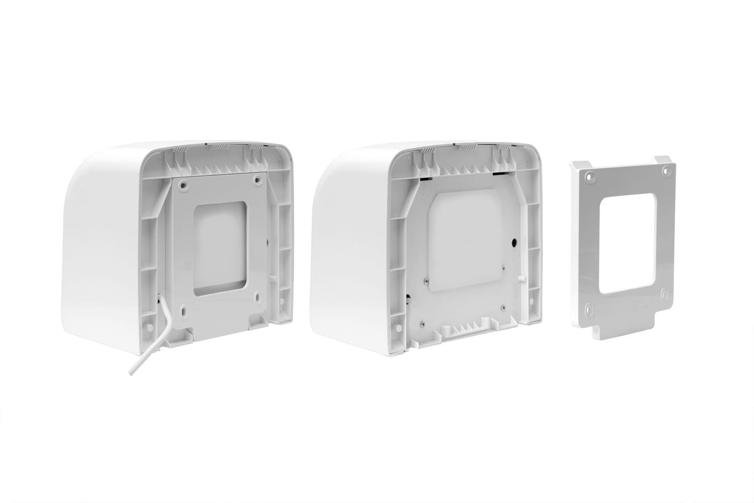 Biała suszarka do rąk MBPA4 jest wyposażona w system filtrów HEPA oraz posiada wbudowany przewód zasilający. Ponadto do całości jest dołączony zestaw montażowy.