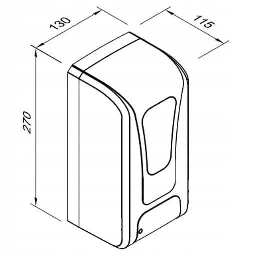 - Wymiary dozownika: Wysokość 270 mm, szerokość 130 mm, głębokość 115 mm