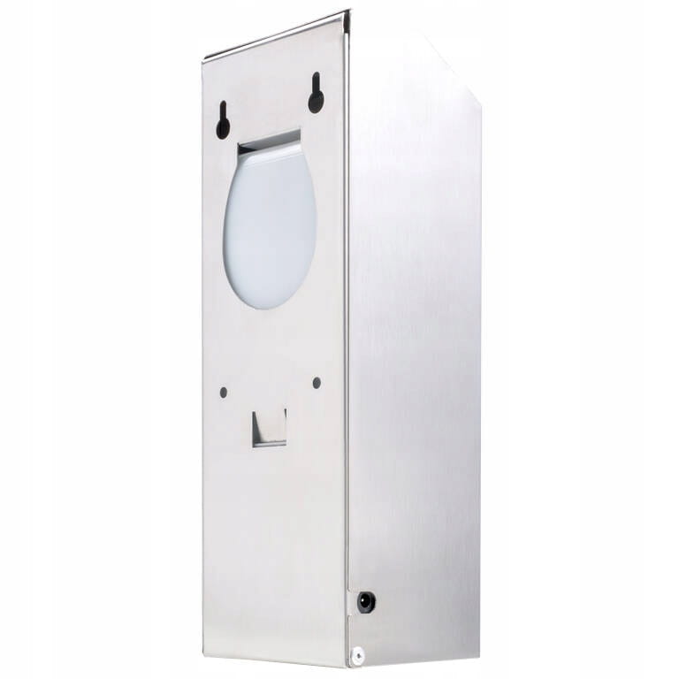 Automatyczny dozownik do mydła w płynie i środków dezynfekcyjnych 1l HIT jest bardzo mocnym i odpornym na uszkodzenia naściennym podajnikiem, który wykonano ze stali nierdzewnej matowej. To elegancki, nowoczesny i funkcjonalny element wyposażenia toalet publicznych. Dzięki dużej pojemności świetnie pasuje do pomieszczeń o wysokim natężeniu ruchu. Dozowników tego typu, o czym należy pamiętać nie zleca się montować w pływalniach, pod natryskami oraz innych bardzo wilgotnych i chemicznie agresywnych pomieszczeniach. Okienko umożliwia sprawne kontrolowanie poziomu mydła wewnątrz dozownika, a ergonomiczny przycisk gwarantuje komfort jego użytkowania.
