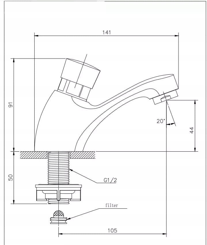 ✔️ Bateria czasowa umywalkowa z jednym przyłączem G1/2, na wodę zimną lub wstępnie zmieszaną.