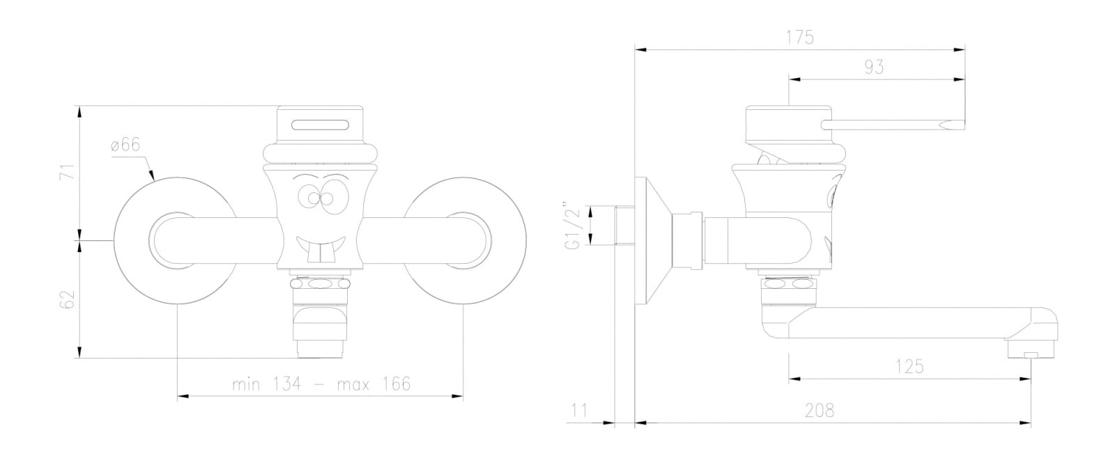 Bateria umywalkowa ścienna dla dzieci z dwoma przyłączami