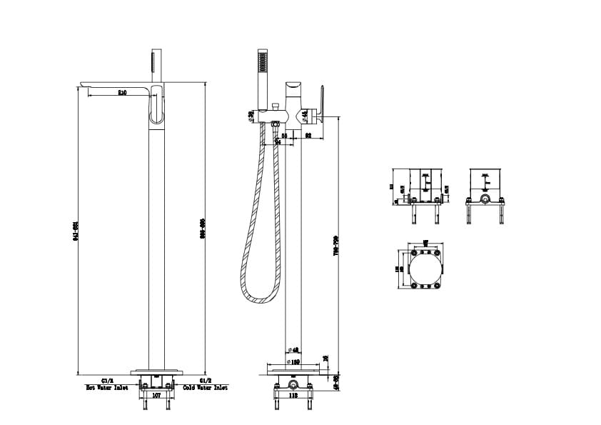 Bateria wannowa wolnostojąca z obrotową wylewką Axel EXPERIENCE QF1165E
