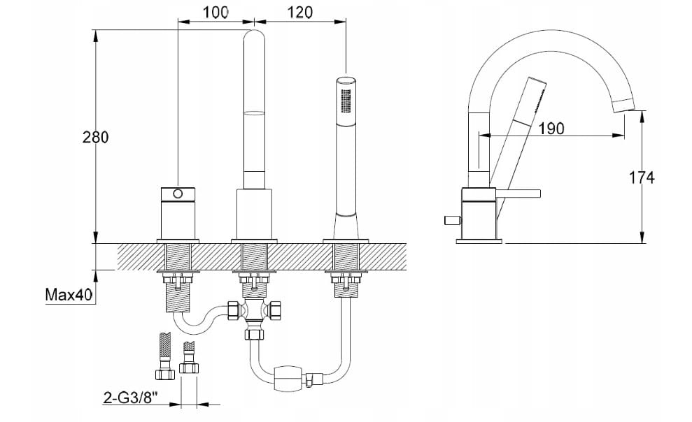 Bateria wannowa z obrotową wylewką Kohlman AXEL QB241A CHROM
