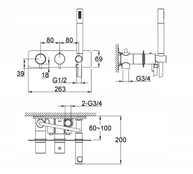 AXEL QW265A Bateria wannowo - prysznicowa podtynkowa