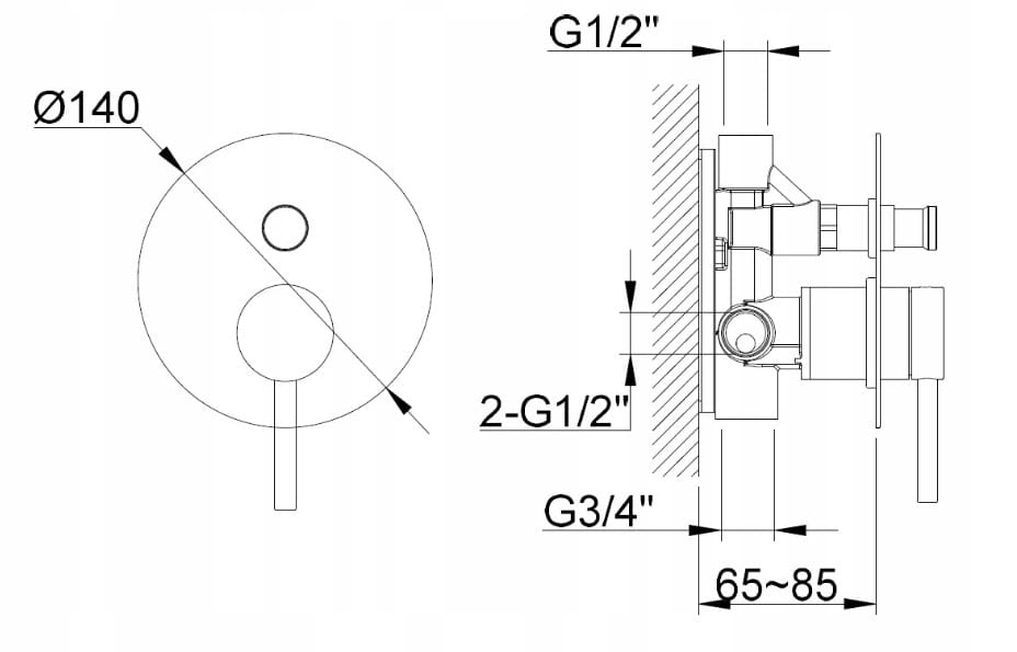 AXEL QW210A Bateria wannowo - prysznicowa z dwoma wyjściami