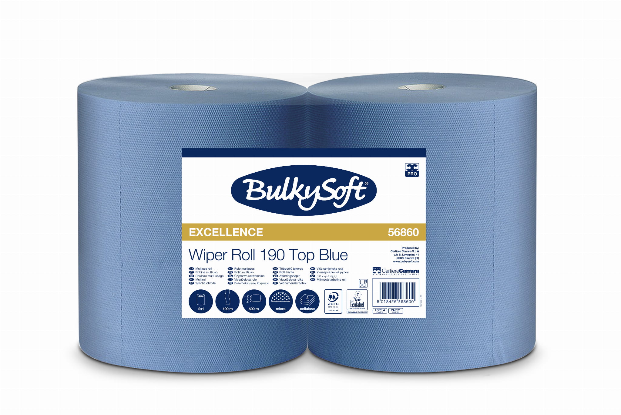 Czyściwo papierowe Bulkysoft. Wyróżnia je klejona struktura i zastosowanie technologii typu PUNTA-PUNTA. Wpływa ona na trwałość i wytrzymałość czyściwa. Potęgowane jest to także trzywarstwową strukturą, wykonaną z czystej, selekcjonowanej celulozy. Produkt ten jest niebieski, o długości 190 metrów. Podzielenie na 500 odcinków przekłada się na praktyczny sposób użytkowania. Każdy listek papieru jest wyjątkowo chłonny i wytrzymały zarówno na sucho, jak i na mokro. W połączeniu z wodą, rozpuszczalnikiem lub detergentem czyściwo może być stosowane do każdej powierzchni lub przedmiotu. Certyfikat ISEGA umożliwia mu kontakt z żywnością. Czyściwo to jest nie tylko wydajne, i wytrzymałe, ale także miękkie i przyjazne dla skóry. Wysoka trwałość czyściw papierowych Bulkysoft i ich estetyczny wygląd sprawiają, że mogą być zastosowane w każdych warunkach.