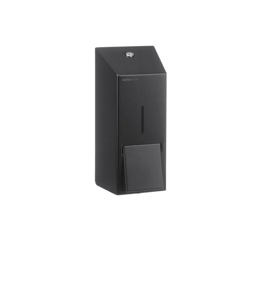 Nowoczesny dozownik do mydła w płynie o pojemności 800 ml z serii R1 to solidne i funkcjonalne rozwiązanie zaprojektowane z myślą o obiektach publicznych i sanitarnych o dużym natężeniu ruchu. Wykonany z wysokiej jakości stali nierdzewnej, pokrytej trwałą powłoką w kolorze czarny mat, wyróżnia się estetyką oraz odpornością na intensywne użytkowanie.