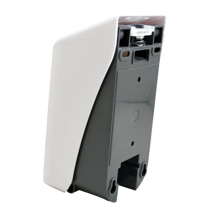 Dozownik płynu dezynfekcyjnego, wykonany z tworzywa ABS. Kolor biały. Do dozownika dołączony jest specjalny kluczyk dzięki któremu uzyskujemy dostęp do wnętrza dozownika i tym samym otrzymujemy możliwość uzupełnienia płynu. Dozownik nie wymaga drogich w użytkowaniu wkładów z płynem dezynfekującym. Możemy uzupełnić go z opakowania zbiorczego (np. z kanistra). O ilości pozostałego płynu informuje nas duży przezroczysty wziernik znajdujący się z przodu dozownika.