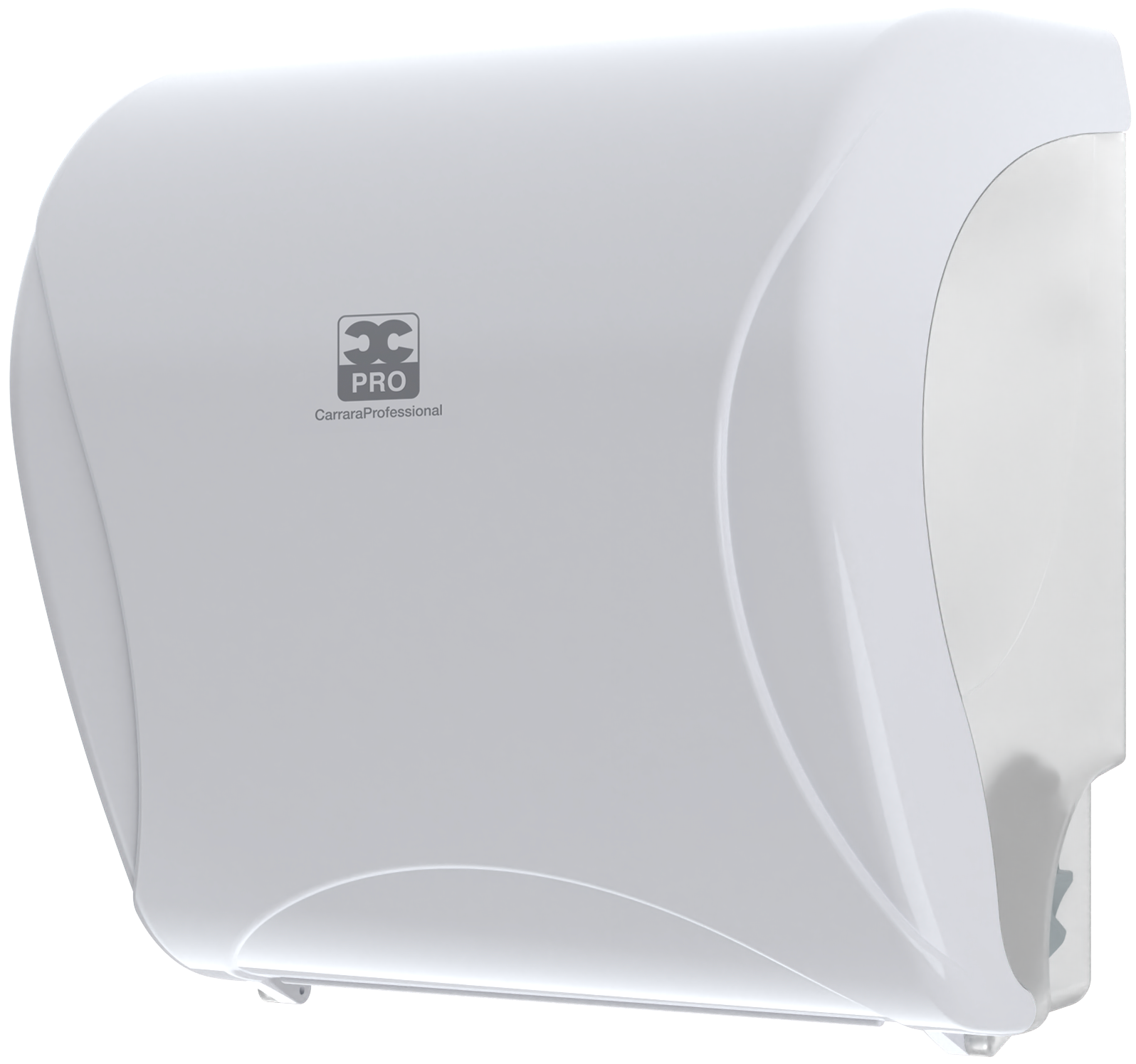 Dozownik do papieru wykonany jest z trwałego tworzywa ABS. Dzięki temu można w prosty sposób można utrzymać dozownik w czystości, a ponadto jest on odporny na uszkodzenia. Dostępny w uniwersalnym, białym kolorze - elegancki i estetyczny, wpasuje się w wystrój każdego pomieszczenia. Dodatkowo jest częściowo transparentny, co umożliwi stała kontrolę na ilością dostępnego wkładu ręczników w roli. Dozownik ten jest pojemny, dlatego nadaje się do łazienek i pomieszczeń, które są często wykorzystywane, np. w biurach, zakładach przemysłowych, uczelniach, hotelach i innych.
