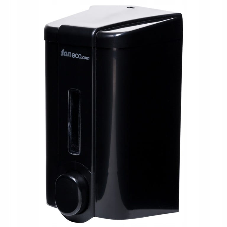 Dozownik mydła w płynie 1 l DARK idealnie nadaje się do wszelkich miejsc użyteczności publicznej, takich jak toalety, zaplecza socjalne czy kuchnie. Wykonany jest on z plastiku ABS w kolorze czarnym. Montuje się go na ścianie. To bardzo prosty i wygodny w obsłudze podajnik, który po naciśnięciu przez użytkownika przycisku uwalnia płynne mydło. Można je dowolnie dobierać, a okno rewizyjne dozownika zapewnia łatwe kontrolowanie jego ilości wewnątrz.