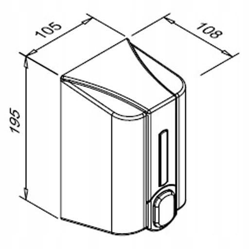 - Wymiary dozownika: Wysokość 195 mm, szerokość 105 mm, głębokość 108 mm