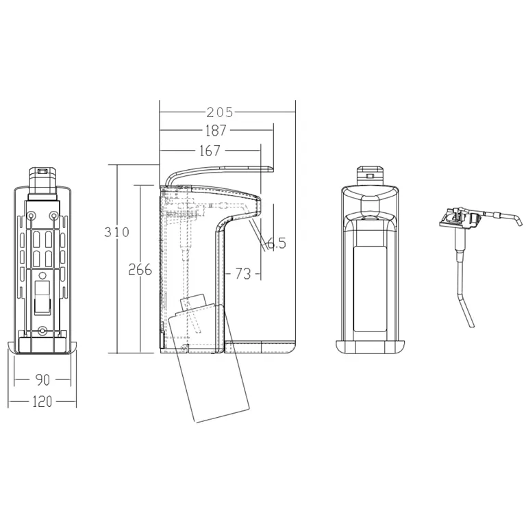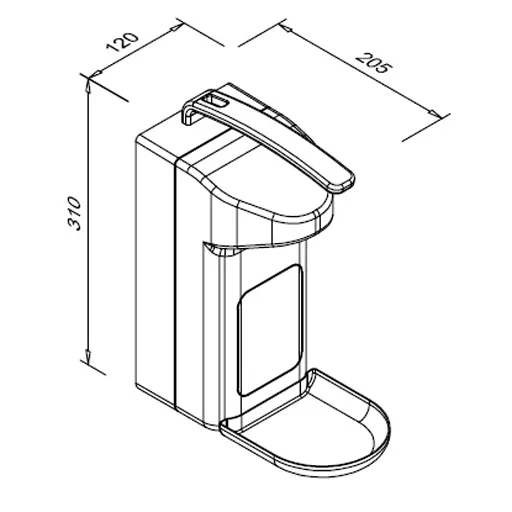 - Wymiary dozownika - wysokość 310 mm, szerokość 120 mm, głębokość 205 mm