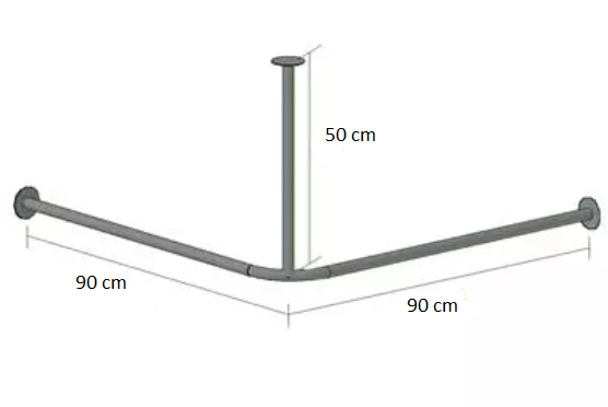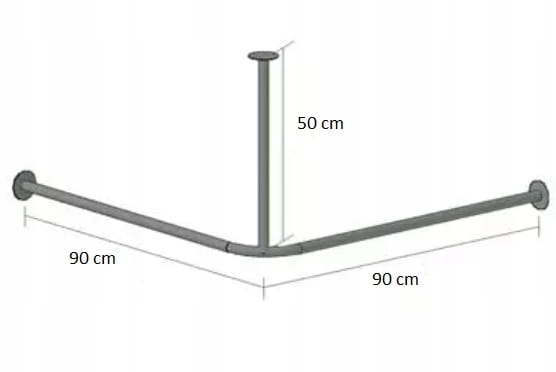 Drążek prysznicowy z podwieszeniem sufitowym o wymiarach 90x90x50 cm. Wykonany z rurki o średnicy 25mm, ze stali węglowej malowanej proszkowo na kolor BIAŁY. W komplecie znajduje się zestaw montażowy (śruby i kołki).