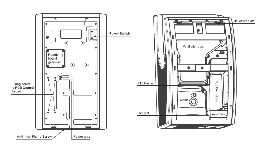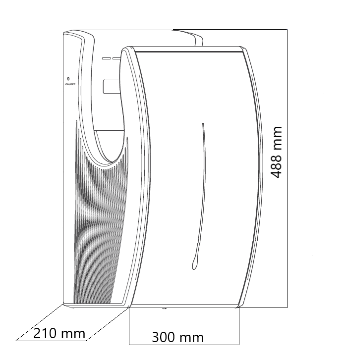- Wysoko ciśnieniowa rotacja strumienia powietrza powoduję natychmiastowe usunięcie kropel wody z dłoni