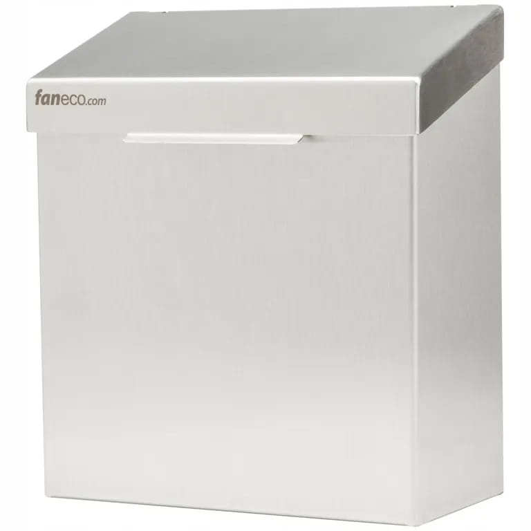 Kosz na odpadki higieniczne do toalet damskich o pojemności 4,2 l został wykonany ze stali nierdzewnej. Ergonomiczny model kosza z pokrywą przeznaczony do użytkowania w damskich toaletach. Kompatybilny z serią LUNA, możliwość montażu zapobiega kradzieży przez co kosz jest przeznaczony przede wszystkim do toalet publicznych narażonych na wandalizm i o dużym przepływie użytkowników.