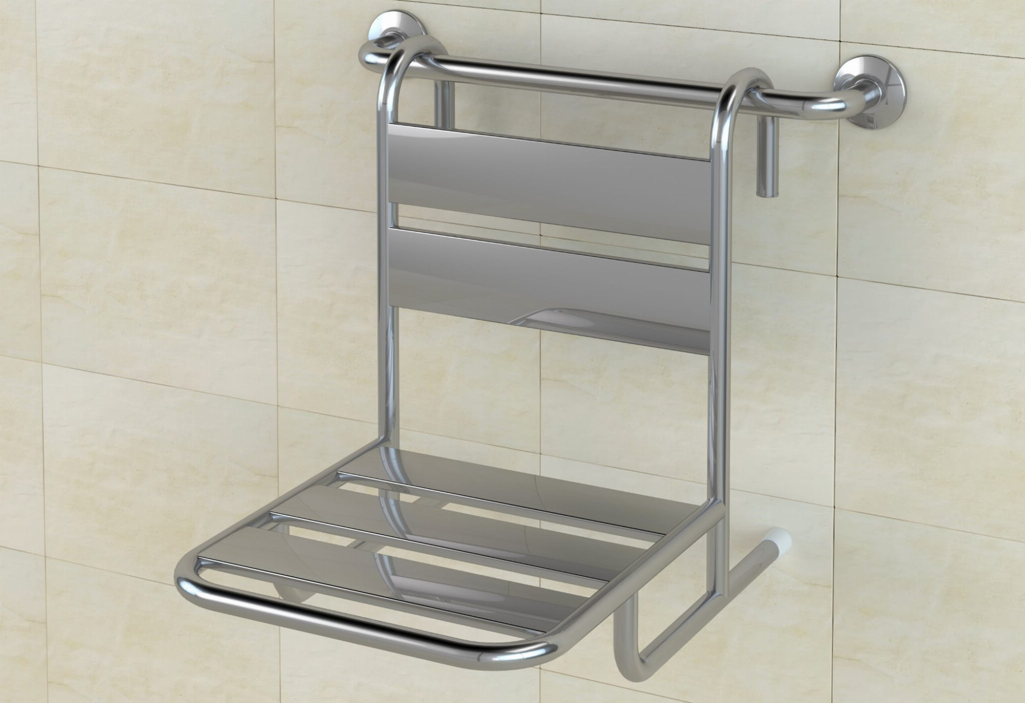 ✅ Dzięki konstrukcji umożliwiającej zawieszenie bezpośrednio na poręczy prysznicowej, model ten sprawdzi się szczególnie w kabinach o ograniczonej przestrzeni, gdzie montaż krzesełka ściennego nie jest możliwy.