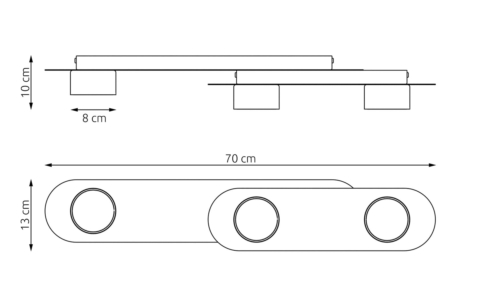 ✅ Okrągłe klosze umieszczone na płaskich, poziomych ramionach tworzą harmonijną i stylową kompozycję.