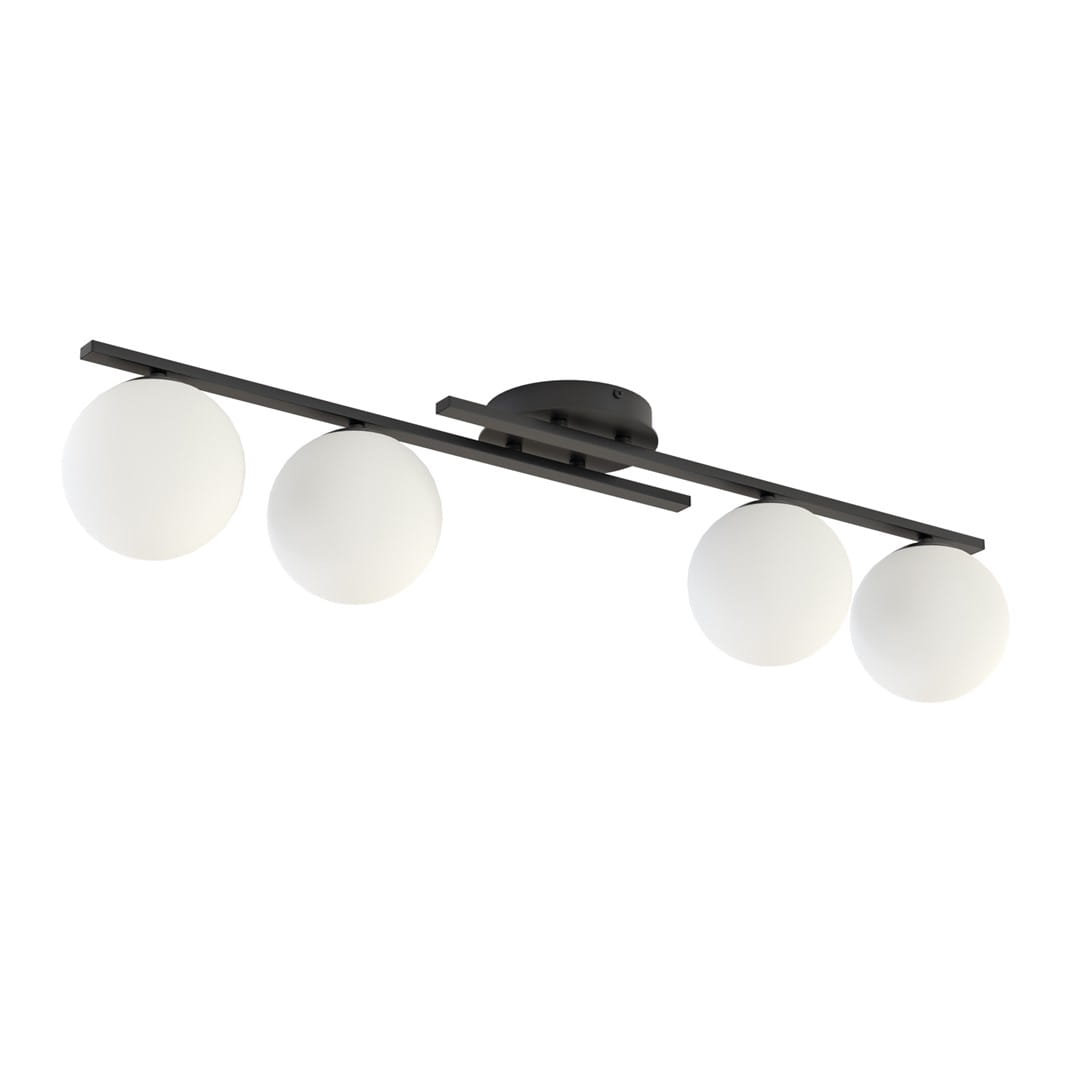 ✅ Nowoczesna lampa sufitowa z kulistymi kloszami na eleganckiej, czarnej konstrukcji.