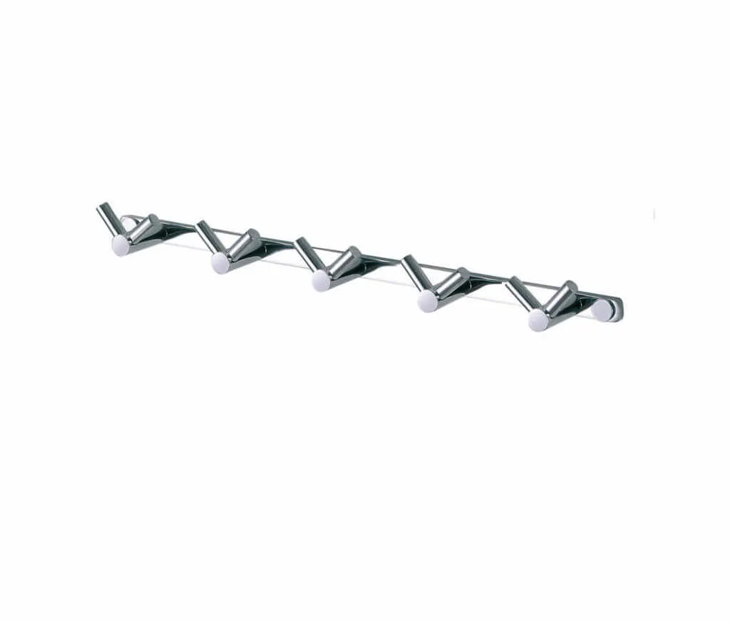 Kompaktowa i wytrzymała listwa z 5 podwójnymi haczykami, wykonana z metalu i wykończona eleganckim chromem. Doskonały wybór do małych przestrzeni – sprawdzi się wszędzie tam, gdzie liczy się funkcjonalność i estetyka.