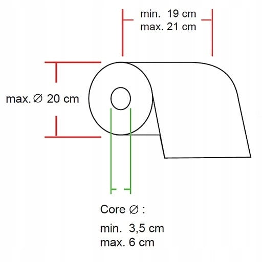 - Wymiary roli Rola szer. max 190 - 200 mm, max ø 20 cm, trzpień 35 - 60 mm