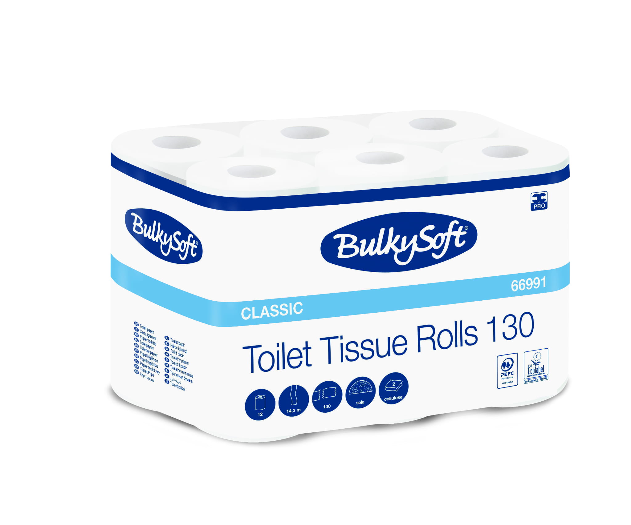Bulkysoft Classic to papier toaletowy w konwencjonalnych rolkach, który jest idealnym produktem do codziennego stosowania dla osób oczekujących dobrej jakości, higieny i ekonomiczności. Papier o białym kolorze, który cechuje dwuwarstwowa budowa. Wykonany z czystej, selekcjonowanej celulozy, co zapewnia wyjątkową miękkość, wytrzymałość i przyjemność użytkowania. Bardzo chłonny. Jedna rolka zawiera w sobie 130 odcinków papieru toaletowego. Papier Bulkysoft Classic stanowi idealne rozwiązanie dla hoteli, w których konieczna jest wymiana rolek każdego dnia. Polecany także i dla innych odbiorców: barów, kawiarni itp.