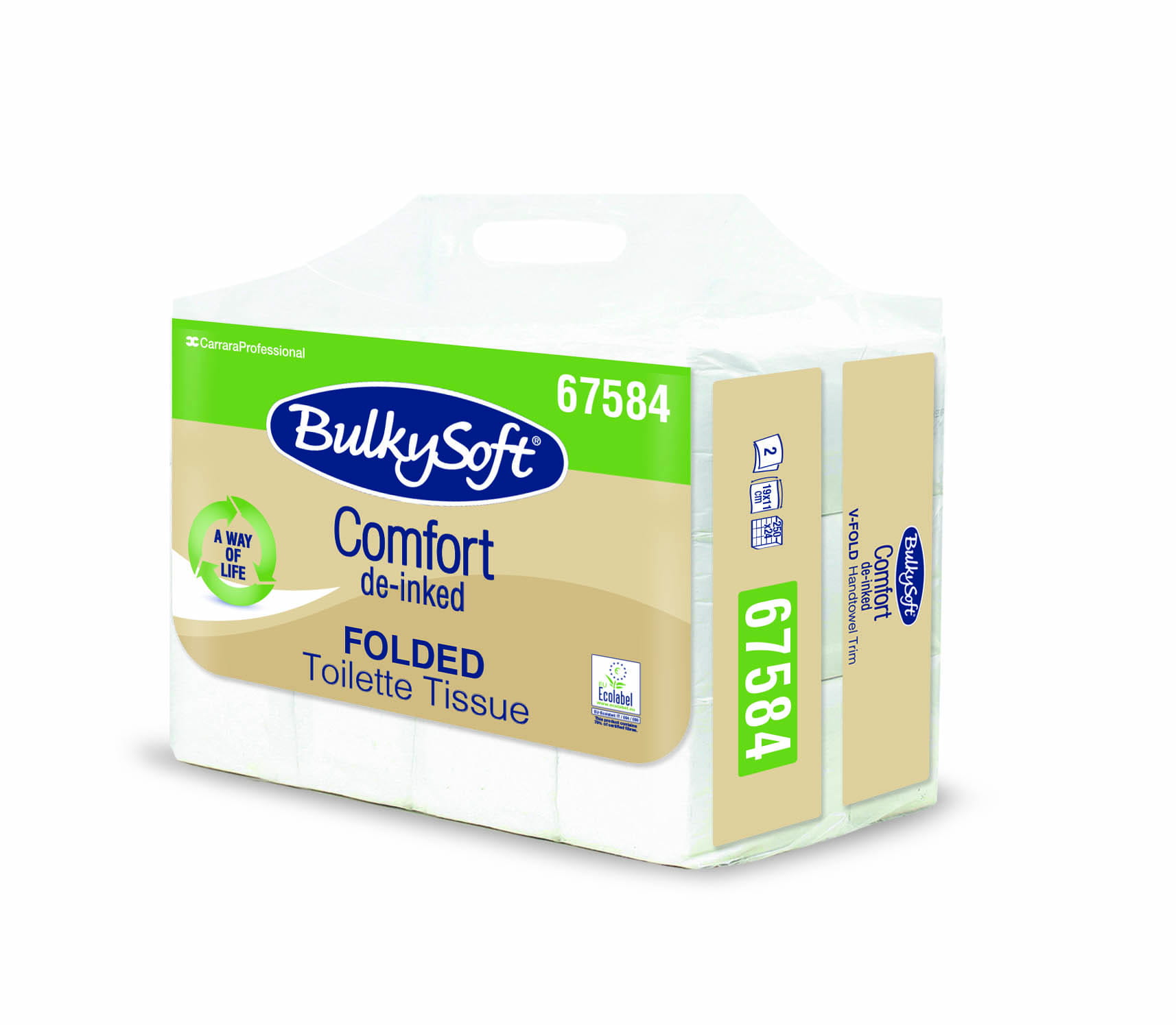 Papier toaletowy w składce Bulkysoft Comfort stanowi doskonałe rozwiązanie dla eleganckich toalet. Biały, dwuwarstwowy wykonany z celulozy z dodtakiem celulozy z recyklingu, miękki i delikatny w dotyku, elegancko gofrowany. Produkt dozowany z dozownika zawsze po jednym listku, dzięki temu jest bardzo ekonomiczny i wydajny w użytkowaniu. Każdy papier toaletowy BulkySoft jest szybko rozpuszczalny w wodzie, dzięki temu unikamy jakichkolwiek problemów z kanalizacją. Produkt posiada w nowoczesne opakowanie typu EASYBAG co powala na wygodny i łatwy transport, łatwiejsze składowanie, otwieranie zgrzewki, ograniczenie odpadów. Produkt dedykowany do szkół, hoteli, biur i innych miejsc publicznych.