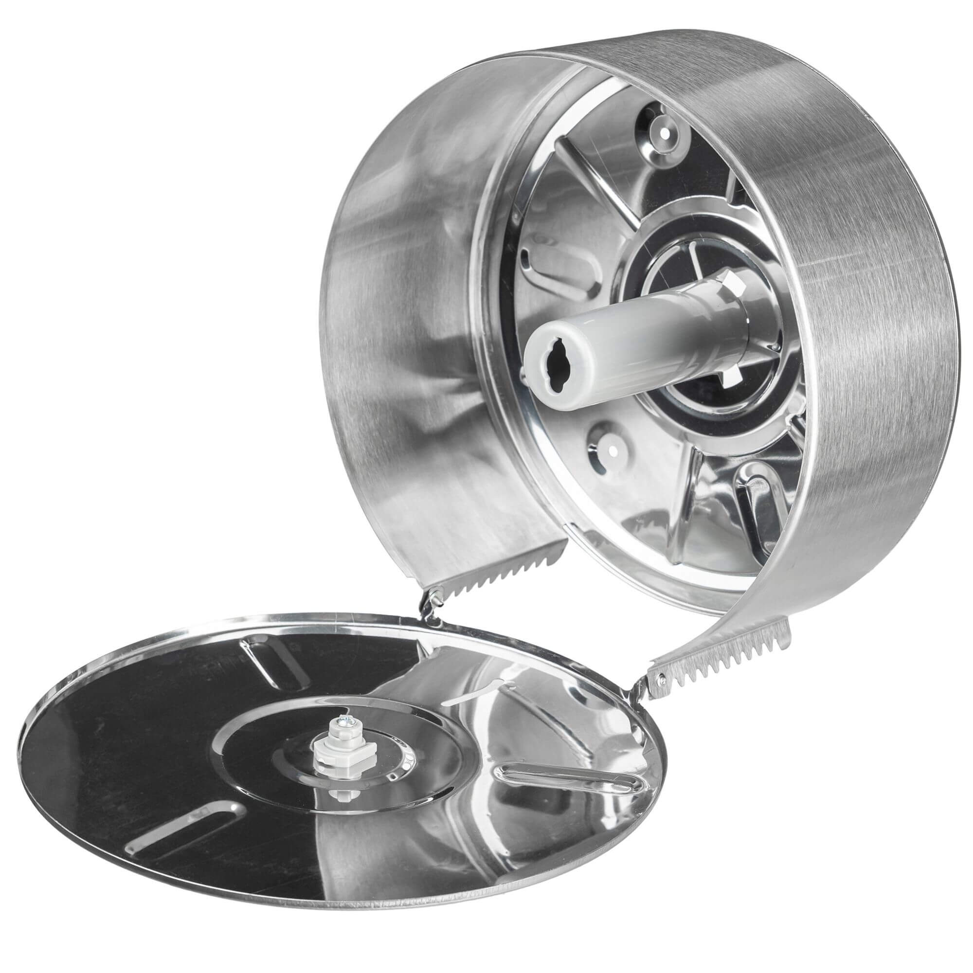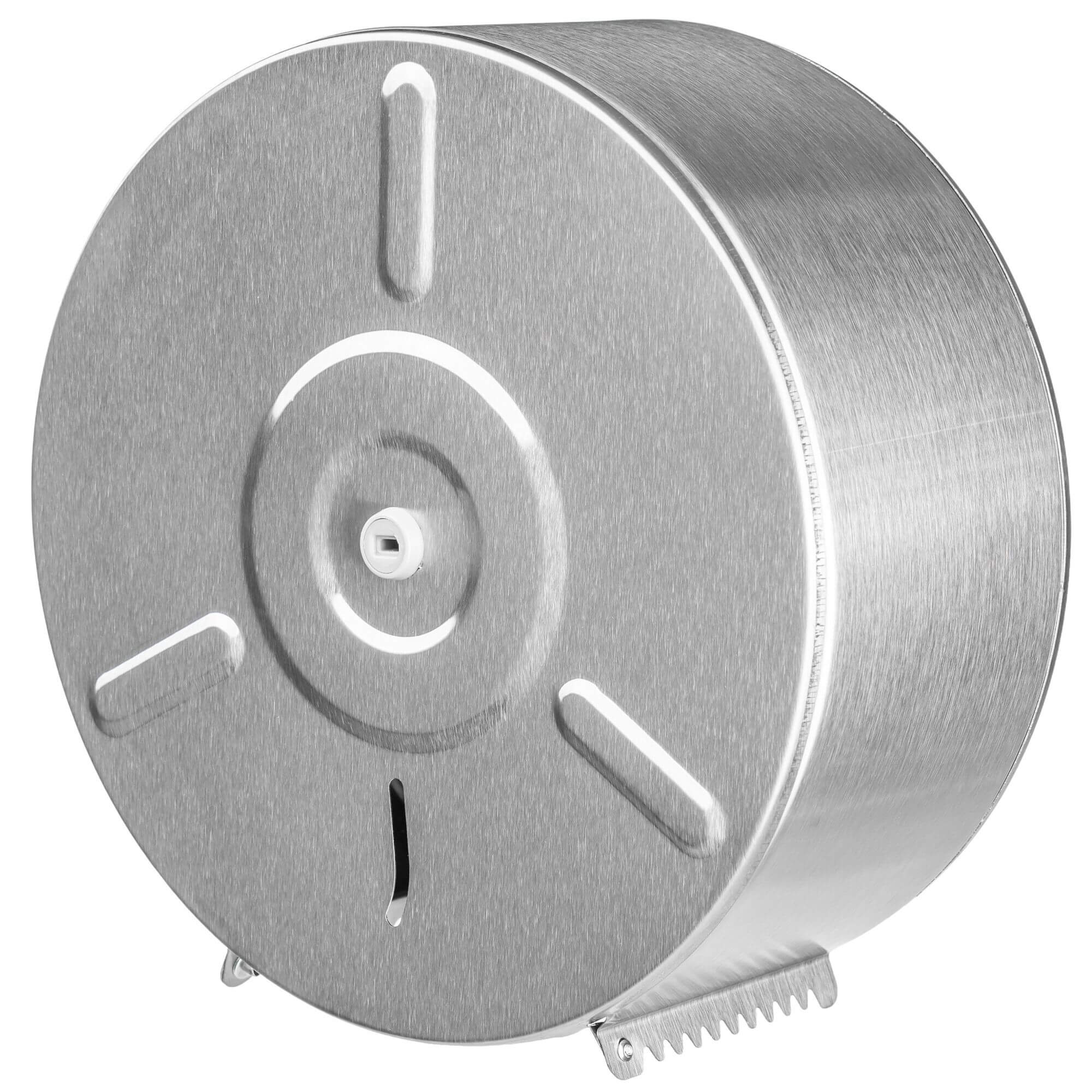 - Duży stalowy dozownik do papieru toaletowego typu Jumbo przeznaczony do wielodostępnych łazienek. Podajnik wykonany jest z stali nierdzewnej. Zamykany na kluczyk. Dolna listwa ząbkowana umożliwia wygodne odrywanie papieru. Podajnik montowany do ściany za pomocą kołków rozporowych.