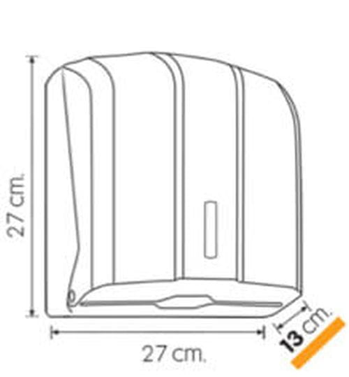 Nowoczesny ergonomiczny pojemnik na ręczniki papierowe składane ZZ,V. Wyciągnięcie jednego ręcznika powoduje wysunięcie następnego. Pojemnik wykonany z tworzywa sztucznego ABS. Posiada okienko do kontroli ilości ręczników w pojemniku Zamykany na plastikowy kluczyk. Montowany do ściany za pomocą kołków rozporowych (w zestawie)