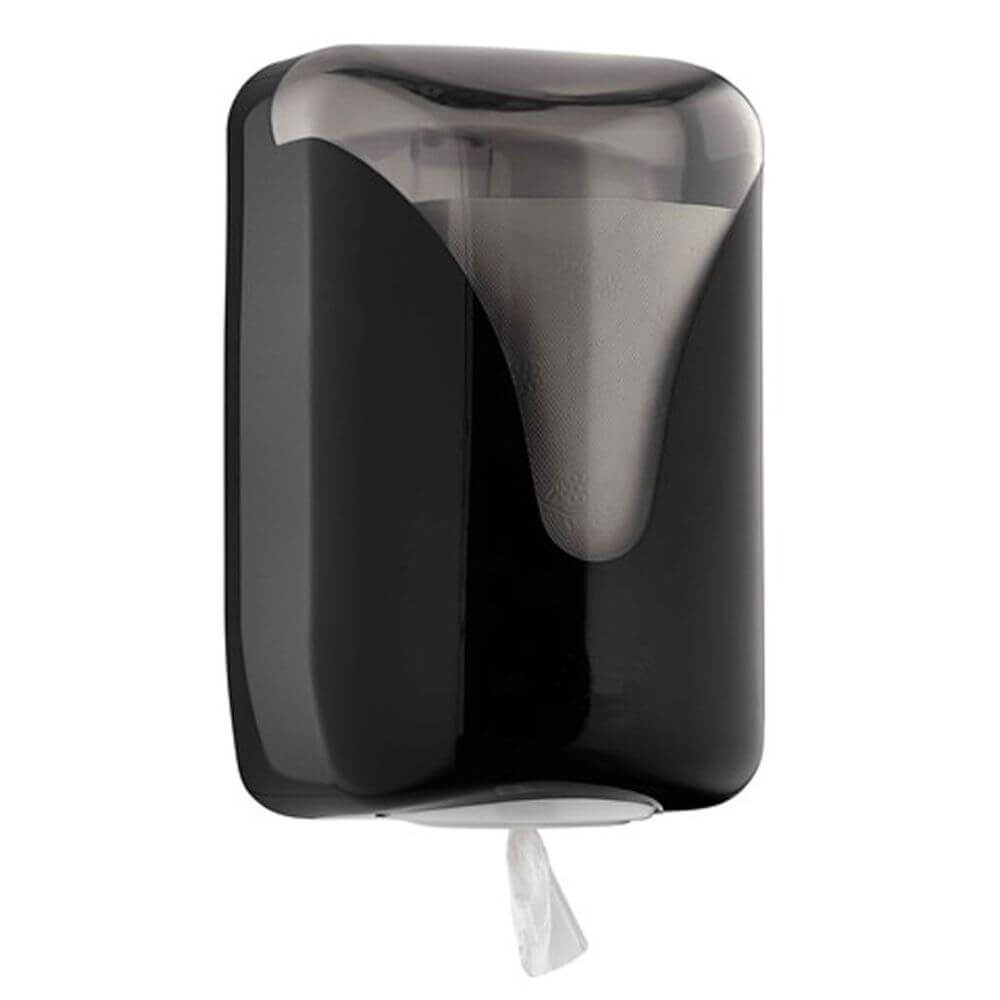 Dozownik do ręczników papierowy w roli centralnego dozowania, montowany do ściany. Ręczniki w roli dozujemy w dolnym otworze podajnika. Dozownik jest wykonany z: bardzo wysokiej jakości plastik ABS. Zastosowane ręczne dozowanie ręczników powoduje że używamy tylko tyle ręczników ile potrzebujemy.
