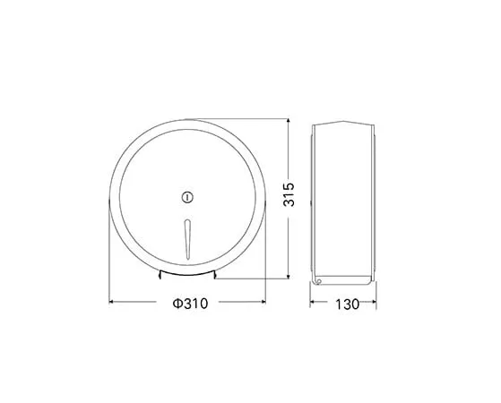 Podajnik papieru C7403 posiada wymiary liczące 310x315x130 mm. Pojemność bębna pomieści 1 rolkę papieru o średnicy do 300 mm. Całość jest zamykana na kluczyk, przy czym w obudowie znajduje się okienko do podglądu ilości pozostałego papieru toaletowego.