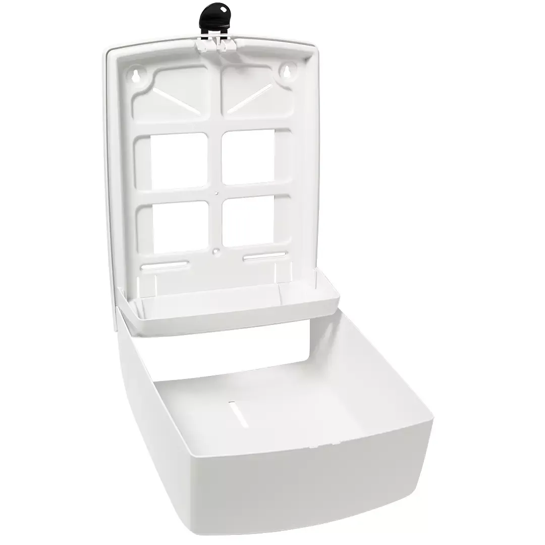 Wysoka pojemność i efektywnośćDozownik do ręczników papierowych "Calma" oferuje pojemność do 600 usług, idealny do miejsc o dużym natężeniu ruchu. Jego duża pojemność zmniejsza potrzebę częstego uzupełniania, co sprawia, że jest to praktyczne i efektywne rozwiązanie dla toalet o intensywnym użytkowaniu.