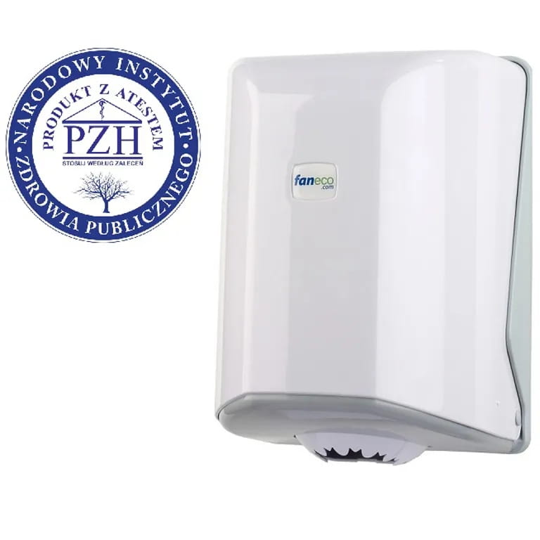 Podajnik ręczników w roli POP to wykonany z mocnego, białego plastiku ABS naścienny pojemnik, posiadający atest PZH. Gwarantuje on bezpieczeństwo i higienę, dlatego jest idealny do szkół, gabinetów lekarskich czy lokali gastronomicznych. Umożliwia dozowanie ręczników bez kontaktu z obudową. To łatwy w montażu, obsłudze i utrzymywaniu czystości dozownik ręczników papierowych.