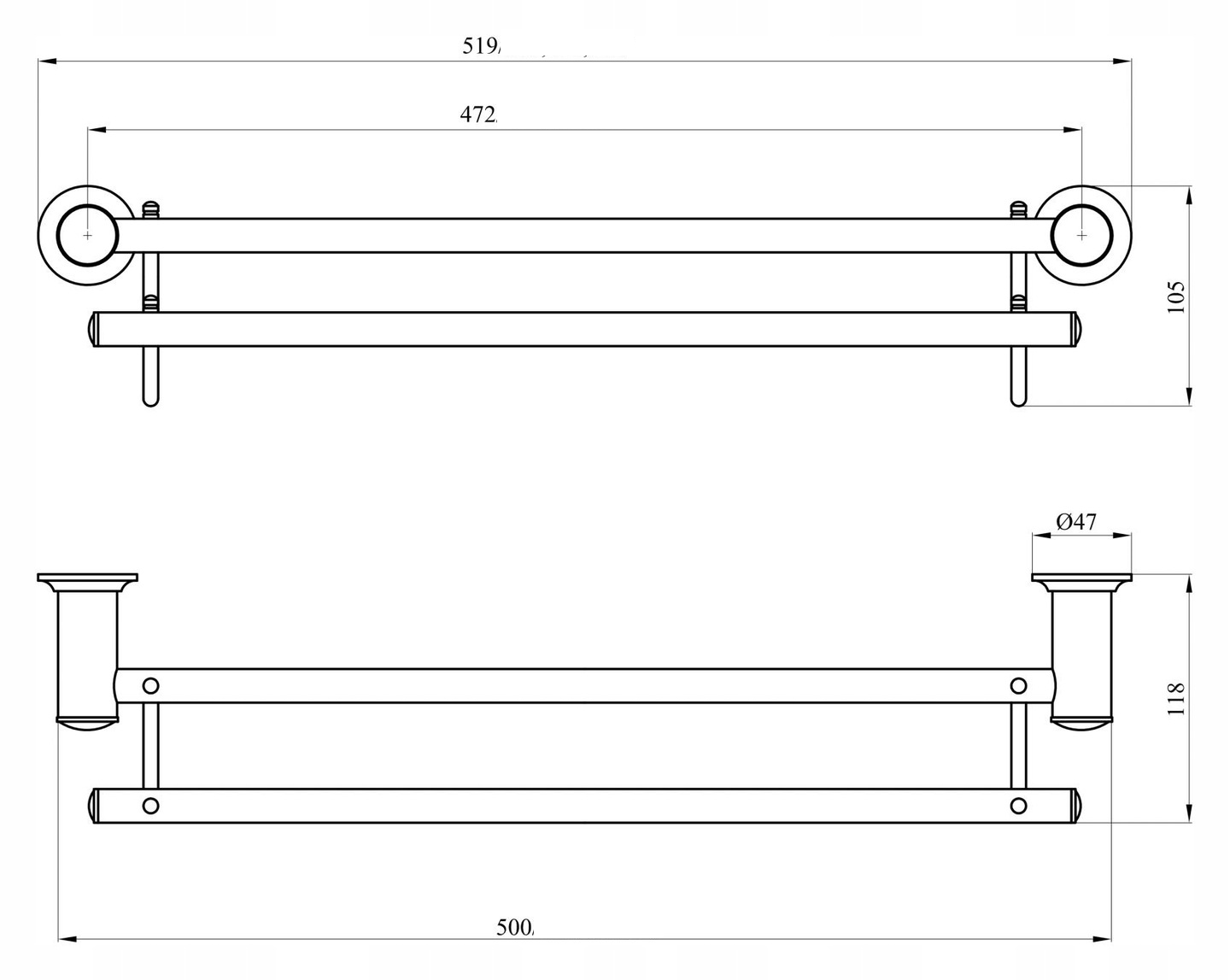 Podwójny wieszak na ręczniki reling Chrom 50 cm