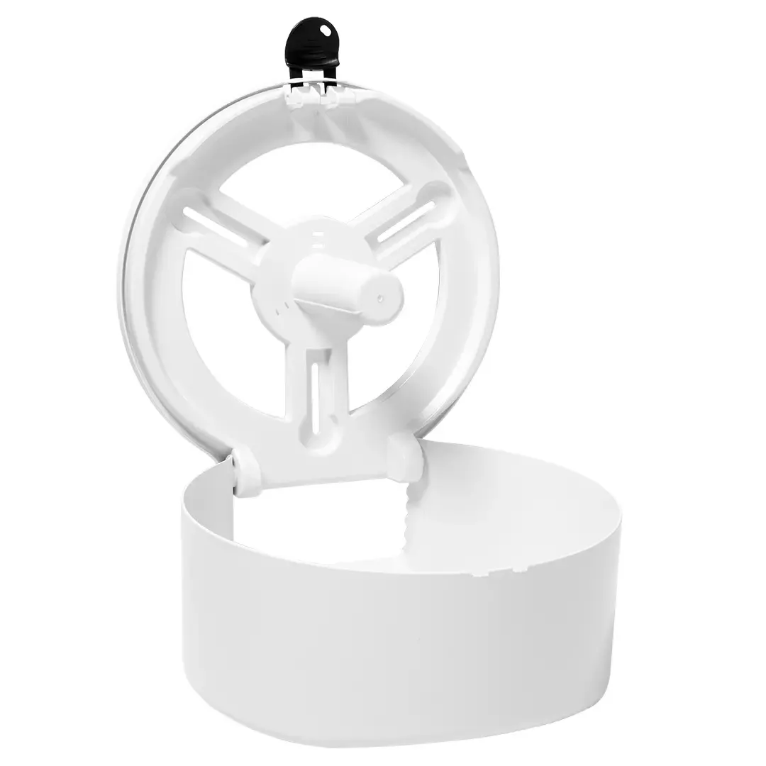 Dozownik posiada przezroczystą przednią szczelinę, która umożliwia kontrolowanie poziomu papieru bez konieczności otwierania urządzenia. System zamykania na klucz Calma zapewnia dodatkowe bezpieczeństwo, zapobiegając nieautoryzowanemu dostępowi do zawartości. Te cechy sprawiają, że dozownik papieru toaletowego jest wyjątkowo praktyczny i wygodny w codziennym użytkowaniu.