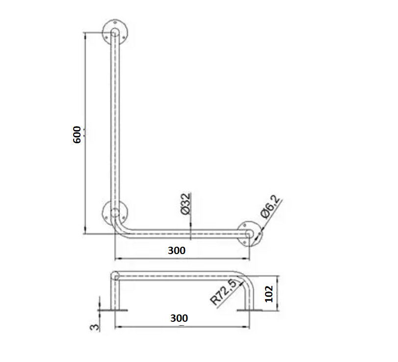 Poręcz dla niepełnosprawnych kątowa lewa 60/30 cm Ø 32 mm Stal nierdzewna