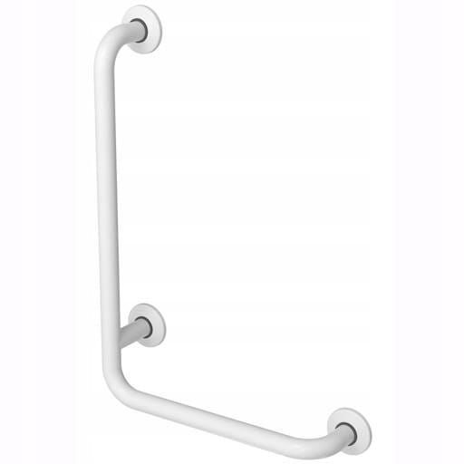 Poręcz kątowa dla niepełnosprawnych 6/4 lewa 90º to niezbędny element wyposażenia toalet publicznych. Wykonana jest ze stali węglowej, pomalowanej proszkowo na biało, co nadaje jej uniwersalnego wyglądu. Poręcz łazienkowa montowana jest przy sedesie i pod prysznicem, by pomóc użytkownikom z problemami ruchowymi korzystać z tych sprzętów. Trzy punkty wsparcia gwarantują stabilność i solidność uchwytu. Podnosi to poziom wygody, komfortu i bezpieczeństwa w toalecie. Pochwyt dla niepełnosprawnych polecany jest do szpitali, szkół, domów opieki, czyli wszędzie tam, gdzie potrzebne jest wsparcie w korzystaniu z toalety.