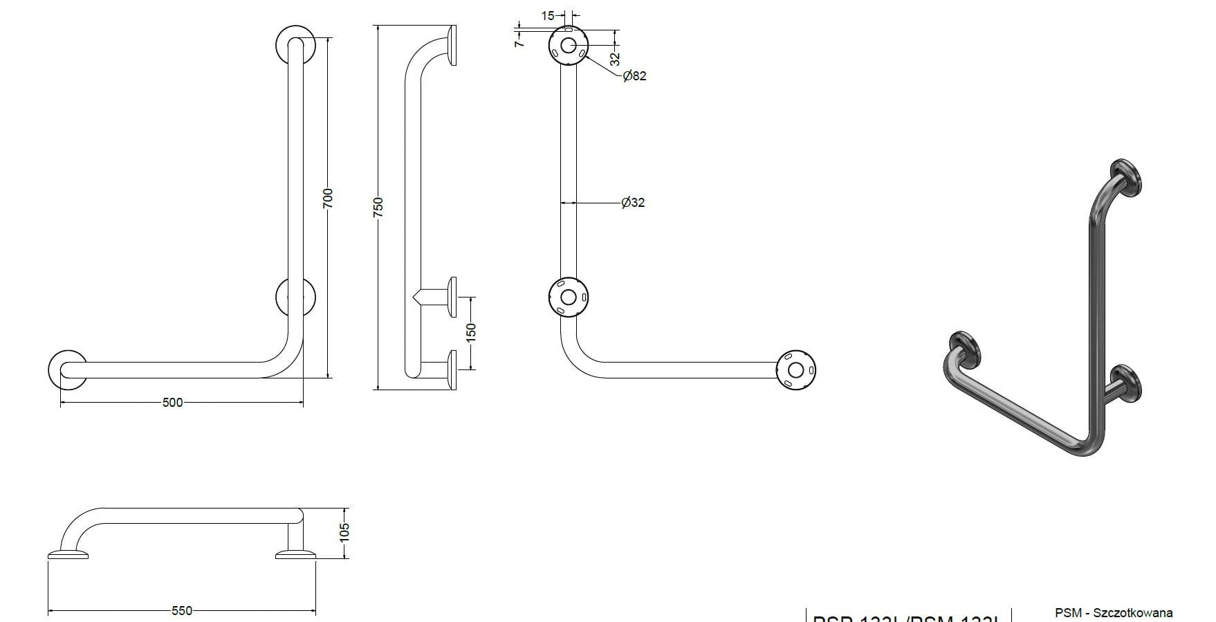 Poręcz kątowa lewa 50/70cm Ø 32mm