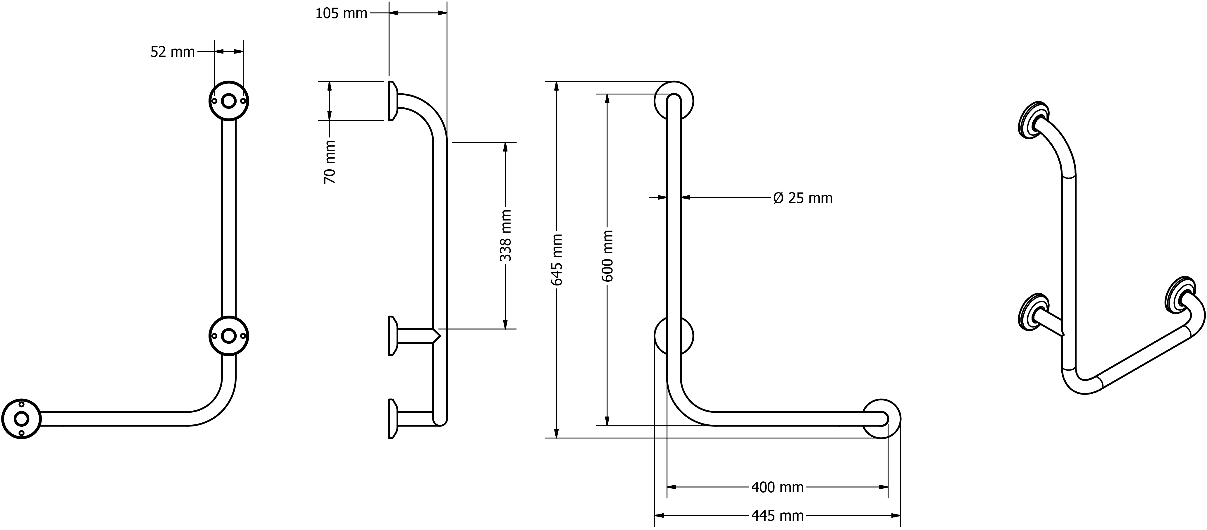 Poręcz dla niepełnosprawnych kątowa prawa 40/60 cm Ø25 mm