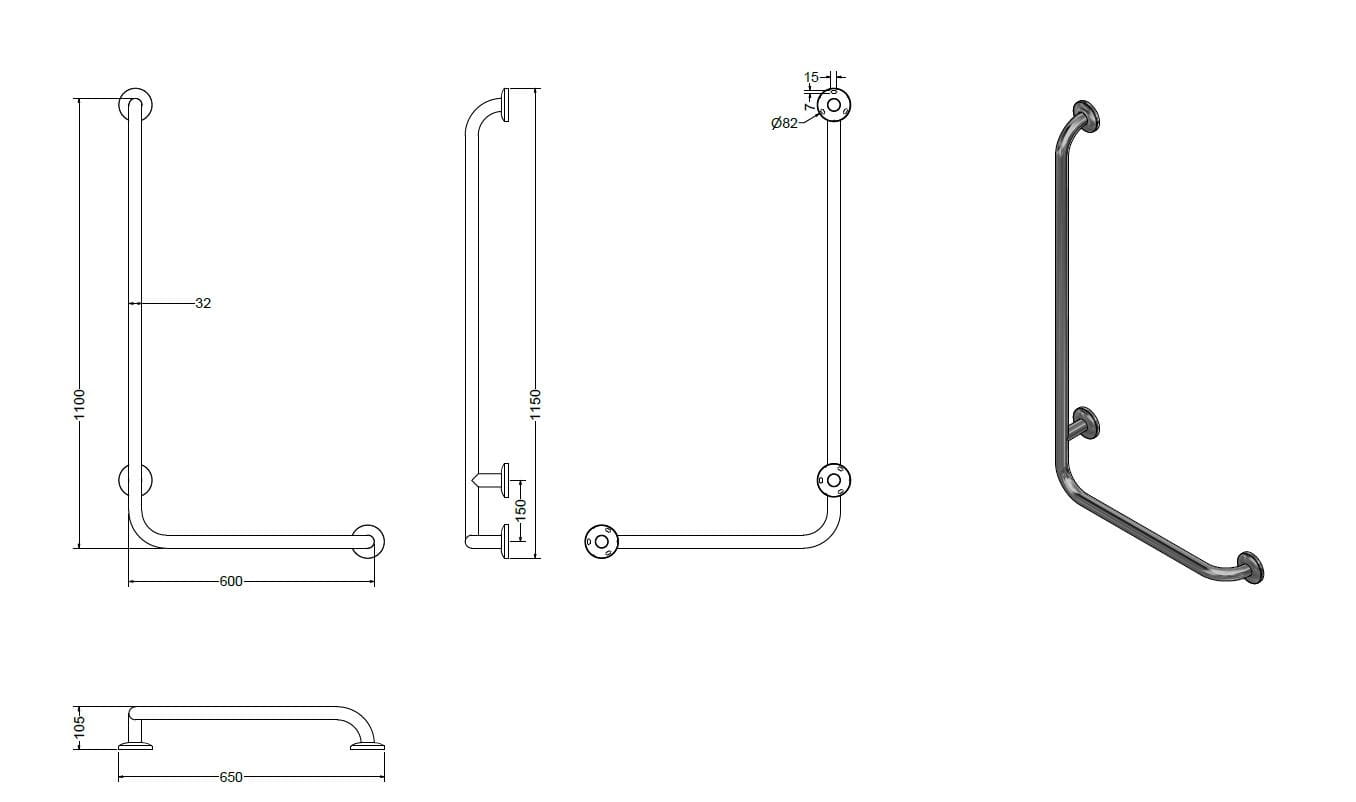 Prezentowana poręcz ma zastosowanie w strefie umywalkowej, prysznicowej oraz wc. Rurka służąca do jej wyprodukowania jest wykonana ze stali nierdzewnej AISI 304 o średnicy 32 mm.Interesującym rozwiązaniem jest zastosowanie systemu zatrzaskowego w rozetach maskujących. Pozwala to zamontować rozety bez użycia kleju montażowego.