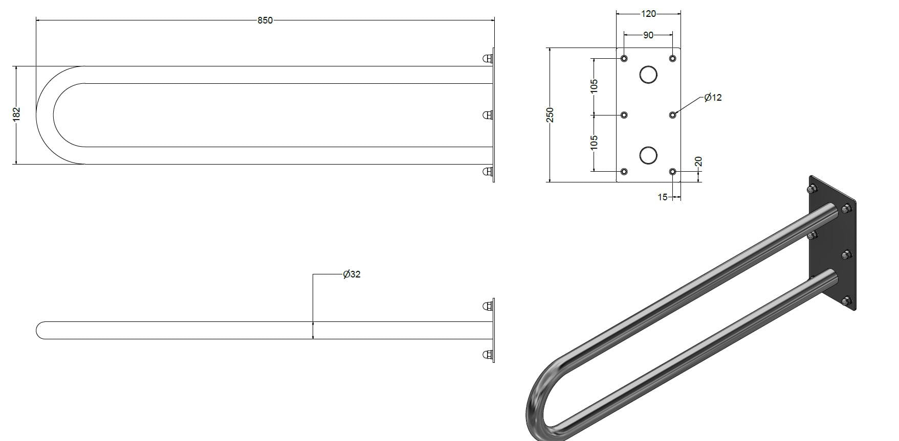 Poręcz dla niepełnosprawnych łukowa stała 85cm Ø32 mm