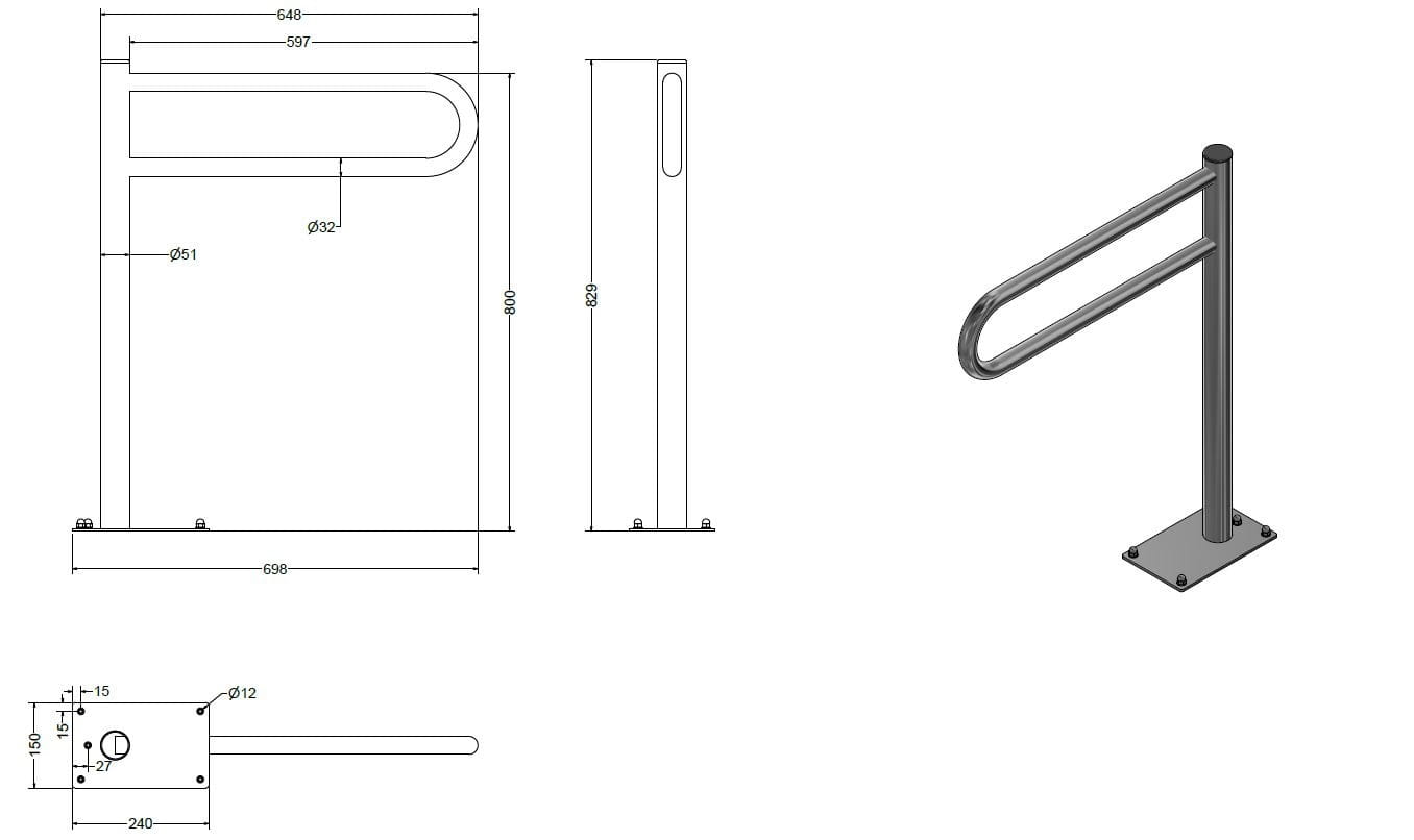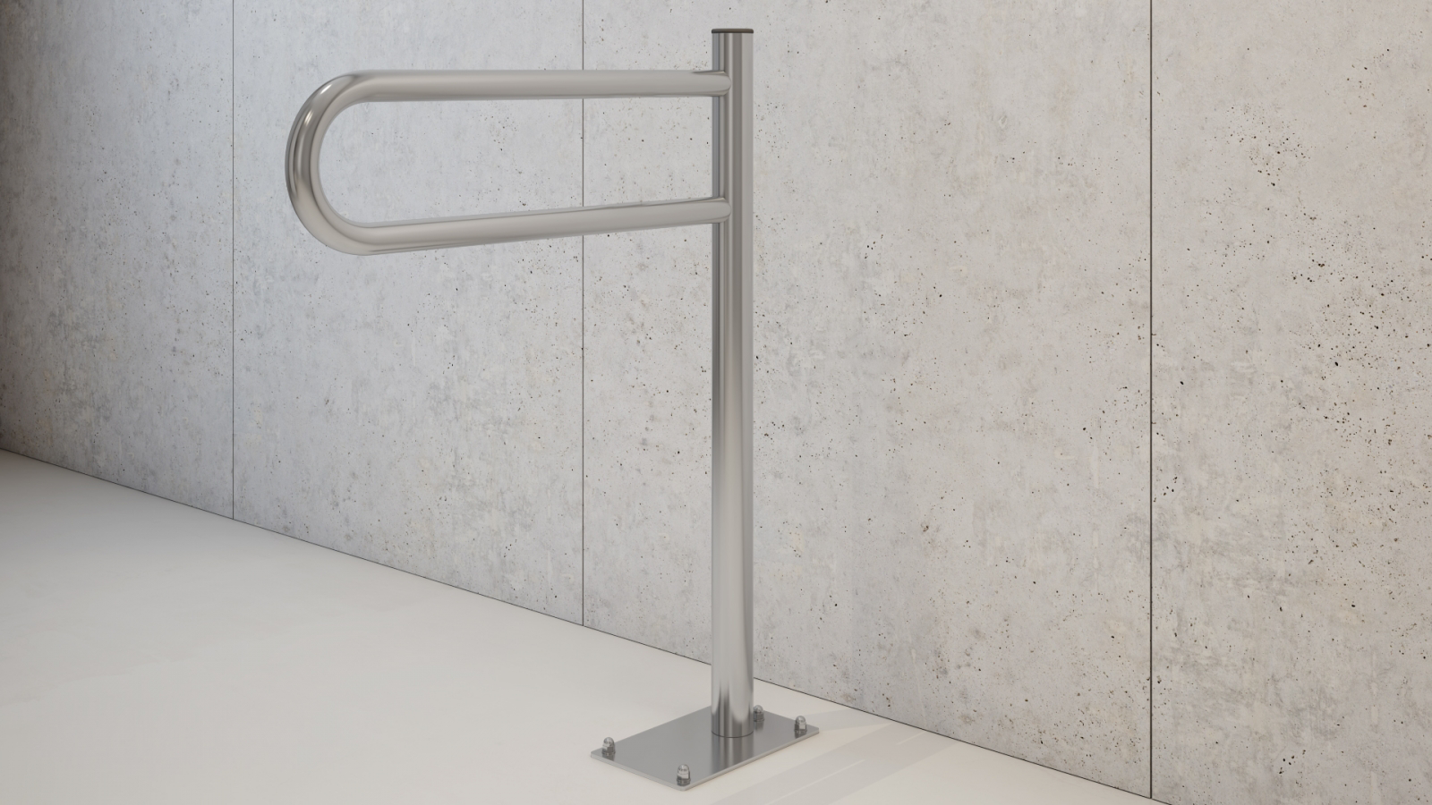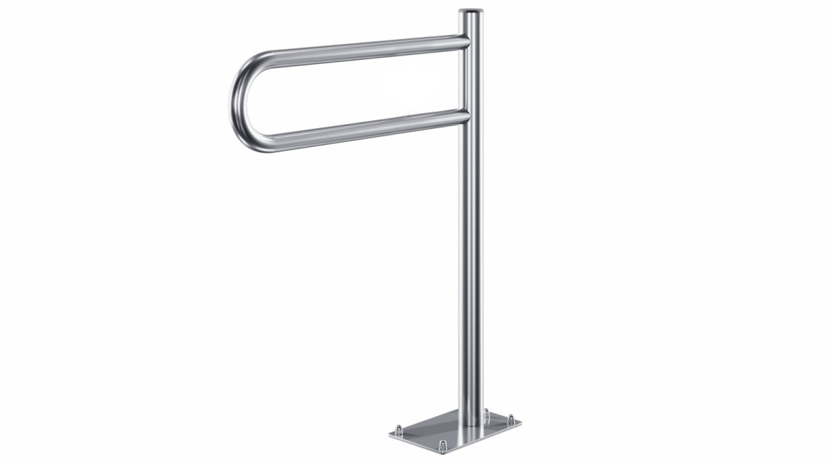 Prezentowana poręcz jest poręczą stałą przystosowaną do podłogowego montażu. Stanowi idealną pomoc przy podpieraniu i podnoszeniu się. Może również służyć jako pomoc w przemieszczaniu się do WC lub natrysku.