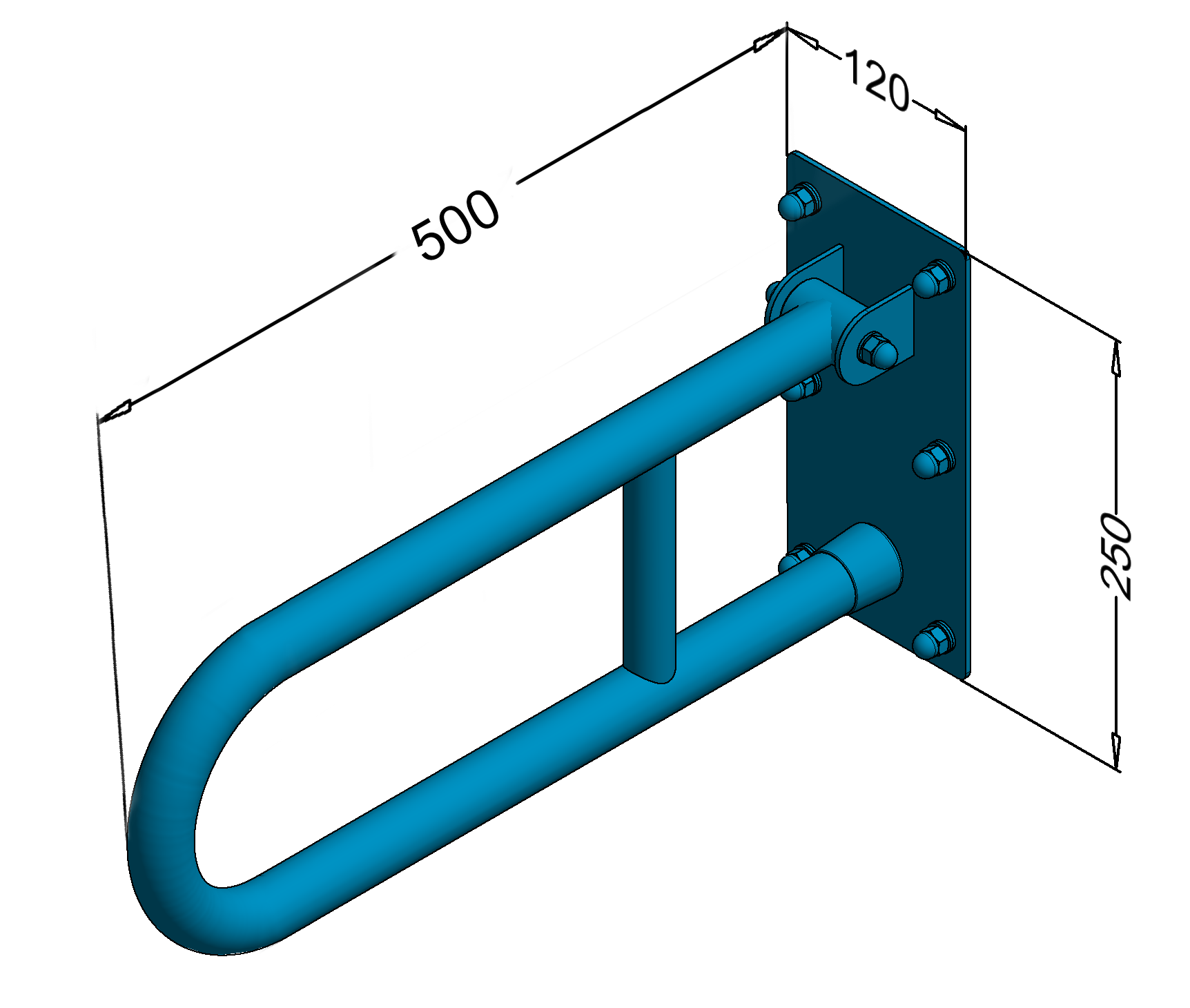 Poręcz dla niepełnosprawnych łukowa uchylna 50cm Ø32 mm