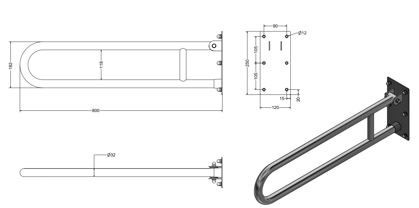 Poręcz dla niepełnosprawnych łukowa uchylna 80cm Ø32 mm