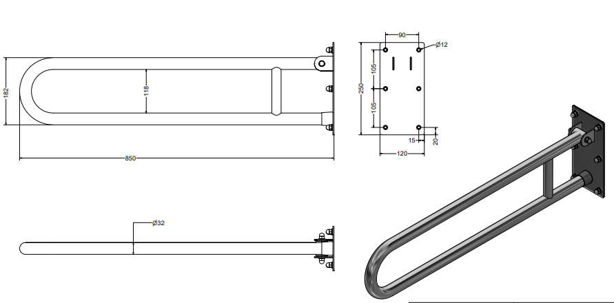 Poręcz dla niepełnosprawnych łukowa uchylna 85cm Ø32 mm