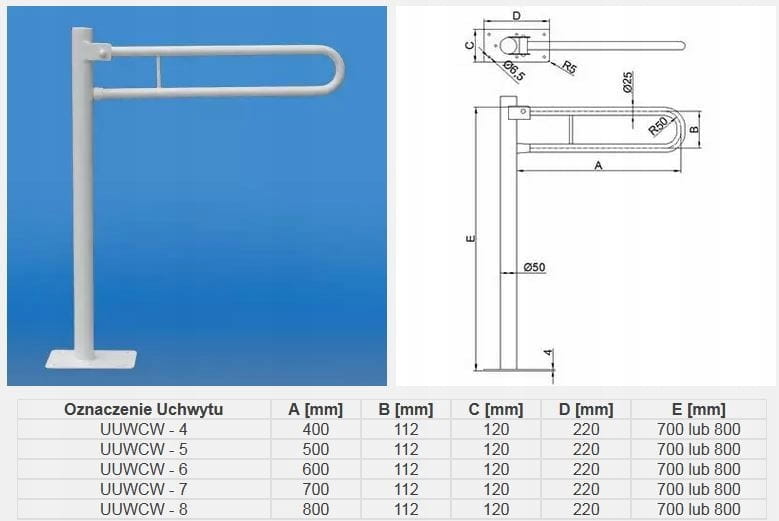 Uchwyty uchylne wolnostojące zwiększają mobilność, są pomocne w zachowaniu równowagi.